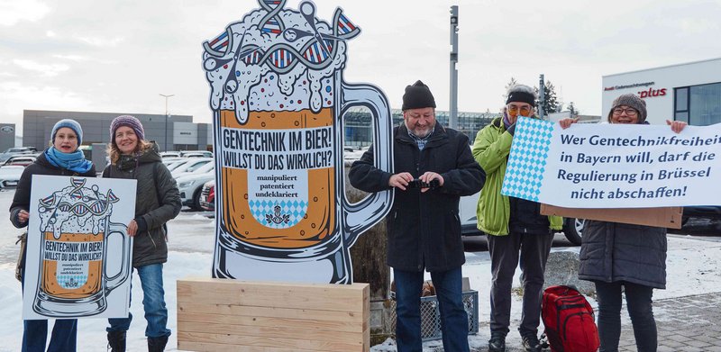 Bereits beim politischen Aschermittwoch der CSU am 18.02.2026 in Passau hatte ein Bündnis aus 18 Bauern-, Umwelt- und Verbraucherorganisationen mit einer überdimensionalen Maß Bier mit der Aufschrift „Gentechnik im Bier? Manipuliert - patentiert – undeklariert – Willst Du das wirklich?“ öffentlichkeitswirksam gegen die Gentechnik-Deregulierung protestiert.