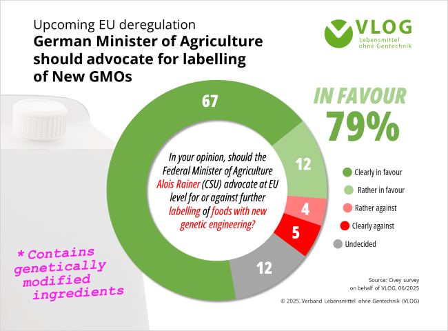 | Dear readers, the EU Council of Agriculture Ministers is meeting in Brussels today. New genomic techniques (NGT) are also on the agenda. The new German coalition is divided on this issue, as recently became clear in the national parliament Bundestag. The new German Minister of Agriculture, Alois Rainer (CSU), has not yet taken a public position. However, a recent VLOG survey shows that the majority of Germans clearly want Rainer to advocate for the preservation of compulsory labelling for NGTs at EU level. It would indeed be grossly negligent and also economically absurd to put the successful “Ohne Gentechnik” [Non GMO] and organic food industry at risk by abolishing the basic GMO transparency rules - also in view of the extremely poor global market balance of NGTs to date. The second and possibly decisive round of trilogue negotiations between the EU Commission, European Parliament and Council of Ministers will take place next Monday. You can find out first-hand what the outcome was at our VLOG .:. Forum on 3 July in Berlin and discuss it with us. We look forward to welcoming you there!Your VLOG team