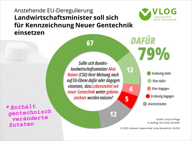 Der neue Landwirtschaftsminister Alois Rainer (CSU) hat sich noch nicht öffentlich positioniert. Der Mehrheitswunsch der Deutschen ist dagegen eindeutig, wie eine aktuelle VLOG-Umfrage zeigt: Rainer soll sich auf EU-Ebene für den Erhalt der Kennzeichnungspflicht auch für NGT einsetzen.
